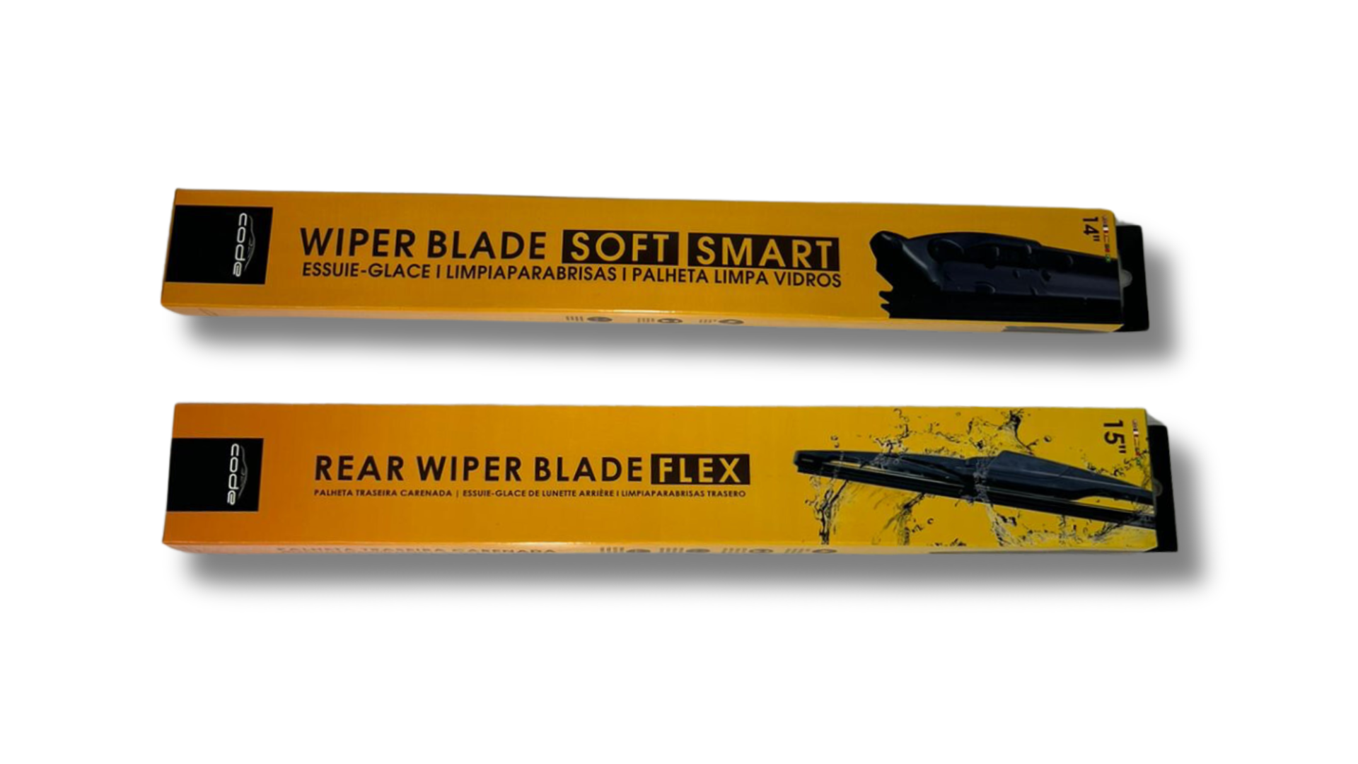 Palhetas dianteira e traseira multi-encaixe, compatíveis com diversos veículos, fáceis de instalar e eficientes na limpeza para melhor visibilidade.